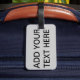 Luggage Tag w/ leather strap Stand out in the baggage carousel with a custom luggage tag from Zazzle! No larger than a business card and constructed of 100% acrylic, this luggage tag is ready to stand-up to the travel demands of any road warrior or adventure seeker. Produced using the AcryliPrint®HD printing process, your baggage tag shows designs, text, and photos in vibrant clarity and brilliant colours. Customise with your personal information on each side and escape bag mix ups for years to come. Made of ultra-durable acrylic. UV resistant and waterproof. Leather luggage strap included. Size 2" x 3.5" (business card size).
