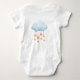 An adorable and cute sleeping baby elephant in a crescent moon design on this baby body suite. Personalise with babies name or text. Another adorable cloud with hearts and stars design is on the back. Makes a great baby shower gift or gift for the new baby and new parents.