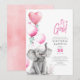 Baby Elephant Pink and Grey Cute Girl Baby Shower Invitation