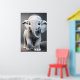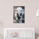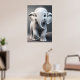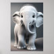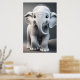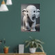 Poster of a baby elephant with big, expressive eyes standing in a gentle pose, showcasing its soft, textured skin. The background is a gradient of light to dark grey, adding depth to the scene.