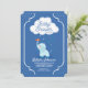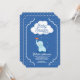 An adorable baby boy shower invitation showing a little elephant holding an umbrella against a shower of love. The blue background features white polka dots. (<a href="https://www.freepik.com/free-vector/baby-shower-invitation-with-elephant-in-hand-drawn-style_1892948.htm">Designed by Freepik</a>).