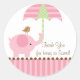 Cute Baby shower thank you sticker features a Sweet Baby Girl Baby Elephant holding a pink & green umbrella with a little brown bird. Perfect sticker for baby favours or invitation envelope seals! Matching invitations, postage stamps & thank you notes are available in our shop at www.celebrateitinvites.com. ©Cocoa Studio