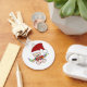 A baby dressed in a red stocking cap holds a string of holiday lights on tote bags, T-shirts, and other items that can be customised with baby's name or other text. Perfect for baby's first Christmas!