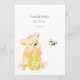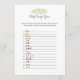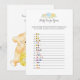 A fun game for the baby shower is the Baby emojis game. This game card features blue florals at the top. On the reverse is a boy teddy bear leaning on a honey barrel watching a honey bee with templates.