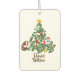 Gender Neutral Christmas kid's air freshener (one year old) titled "My First Christmas" in a form of a Christmas tree decorated with cute santa Clauss, raindeer, angel, sock etc. Customized name of the kid is in the form of tree trunk.