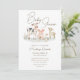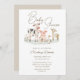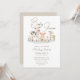 This custom baby shower invitation features a wholesome country farmhouse theme. The image depicts a group of baby farm animals relaxing on the grass. Among the animals are a cow, a chicken, a goose, a pig, and a goat. The "Baby Shower" title is printed in an elegant script font above the animals.
