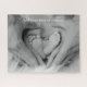 Cute black and white photo of a baby feet, father & mother hands in a heart shape.