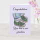 This sweet card brings congratulations to new grandparents on the birth of a grandson. It has my coloured pencil hand drawn and coloured image of the feet of a baby boy in cute green sneakers and rolled up blue jeans. You can edit the outside and inside text, including the font and font colour. You can also change the background colour if you like.