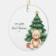 Create your own baby first Christmas ornament featuring a personalised name alongside modern watercolor illustration of teddy bear and Christmas tree. Add your own photo to the reverse side of the ornament.