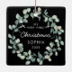 Celebrate baby's first Christmas with this keepsake ornament, featuring a watercolor wreath of green eucalyptus leaves on a black background. The word "Christmas" appears in white handwriting script. Personalise the ornament with baby's name and the year in sans serif font.