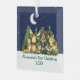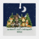 Baby's First Christmas Watercolor Woodland Animals Forest Animals Pine Trees Moon, Starry Sky and Snow Glass Ornament . Baby Animals include Bear, Deer, Moose, Racoon, Bunny Rabbit, Fox and Owl with forest greenery. Add Name. Green Text.
