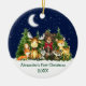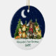 Baby's First Christmas Watercolor Woodland Animals Forest Animals Pine Trees Moon, Starry Sky and Snow Ceramic Ornament . Baby Animals include Bear with Red Bow, Deer, Moose, Racoon, Bunny Rabbit, Fox and Owl with forest greenery. Add Name.