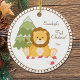 Enjoy your baby's first Christmas with this lion holding a candy cane sitting so cute in front of the tree. A template has been made to personalise name and year!