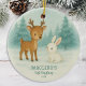 Personalised Baby’s First Christmas Ornament, Custom Newborn Keepsake Gift, Baby Boy or Girl Gift, Baby Girl Ornament. Featuring a woodland illustration with a cute reindeer and snow bunny. Use the design tools to customise the text, font and photo.