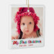 Celebrate and commemorate a child's first Christmas with this timeless, stylish and precious photo ornament. Personalise with a photo and add your baby's name and a year. Adjust your photo as necessary. The script typography is fun and whimsical with classic holiday-themed colours. It is both sophisticated and stylish while the sans serif text is minimalistic, simple and clean. Definitely has a retro holiday vibe. A great gift for new parents. Merry Christmas!