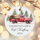 This Baby First Christmas Red Truck Photo Ceramic Ornament is perfect for your little ones first Christmas!