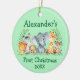 Baby First Christmas Safari Animals Round Green Ceramic Tree Decoration