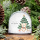 Create your own baby first Christmas snow globe featuring a personalised name alongside modern watercolor illustration of teddy bear and Christmas tree. Add your own photo to the reverse side of the globe