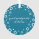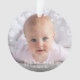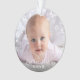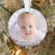 “First Hanukkah.” A playful visual of white Stars of David, snowflakes and handwritten script typography with customised year, overlaying the photo of your choice, help you usher in Hanukkah and New Year. On the back, additional white Stars of David, snowflakes and handwritten typography with “proud grandparents of baby’s name” overlay a teal blue background. Feel the warmth and joy of the holiday season whenever you use this stylish and modern personalised photo keepsake ornament. Perfect for the newly proud grandparents!