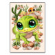 Cute Little Baby Gecko Lizards smiling set of four Characters. Lovely and cheerful cartoon characters, one is green, the other is Brown, with big and sweet green, pink, blue and brown eyes. Original Vector art isolated on white, copyright BluedarkArt TheChameleonArt.