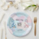 The cutest baby gender reveal paper plates in pink and blue colours for a fun guess if the expected baby is a boy or a girl.