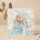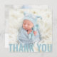 Baby Gift Modern Thank You Newborn Baby Shower Thank You Cards features your favourite photo with the text "Thank You" in elegant modern blue script on the front and an additional photo and your personalised message on the reverse. Personalise by editing the text in the text boxes provided. PHOTO TIP: centre your photo before uploading to Zazzle for best results. Designed by ©Evco Studio https://www.zazzle.com/store/evcostudio