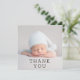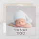 Baby Gift Thank You Newborn Baby Shower Thank You Cards features your favourite photo with the text "Thank You" in elegant modern black script on the front and an additional photo and your personalised message on the reverse. Personalise by editing the text in the text boxes provided. PHOTO TIP: centre your photo before uploading to Zazzle for best results. Designed by ©Evco Studio https://www.zazzle.com/store/evcostudio