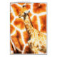 A painting of a baby giraffe up-against it's parent's belly. It has a lot of growing to do to catch up to the size of it's mum and dad.