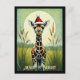 This holiday card features a cute baby giraffe in a Santa hat in a flower meadow. This giraffe Christmas card will be a favourite among giraffe lovers and animal lovers.