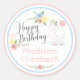 Baby Giraffe Pink Floral Happy 1st Birthday Party Classic Round Sticker