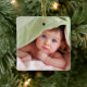 This is a lovely ornament, and great that you personalise the back with details of birthday, weight, etc.. My only tiny disappointment is the "My First" doesn't stand out very well on the background. More than happy with the printing of the photo and the writing on the back.