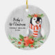 Baby Girl 1st Christmas Personalised Cute Penguin Ceramic Ornament. Personalise with your custom information on both front and back.