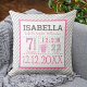 Adorably cute pink and grey striped baby girl birth announcement pillow with a sweet pink baby elephant. Edit to include all of your precious bundle of joy's birth details.