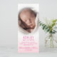 Beautiful birth announcement cards for newborn baby girl. Personalise them by adding photo / picture and information: name, weight, length, place of birth. Back of card has option add poem or other message. Pink and white colours.
