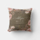 Baby Girl Birth Stats Rustic Wood Floral Pink Rose Throw Pillow. Script calligraphy handwriting with flourish endings sets her name apart! Your daughter or granddaughter's name, birth date, weight, length and time of birth on a beautiful watercolor floral design. Art by internationally licensed artist and designer, Audrey Jeanne Roberts, copyright.