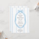 Celebrate the arrival of baby girl with this light blue and white baby shower invitation. A light blue bow and ribbon surrounds the invitation details, while the background consist of stripes. The back of the card features the same striped pattern.