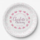 Baby girl paper plate in pink and white with flower heart petals.