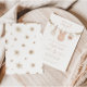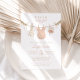 This dainty watercolor design features a clothesline adorned with an adorable baby dress, a stuffed animal, and dried flowers. The neutral colour palette of blush pink, beige, and brown adds to the bohemian vibe, perfect for a chic and stylish baby shower. The back of the invitation showcases matching watercolor daisies, completing the look. Fully customisable text allows you to personalise every detail for your special event.