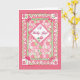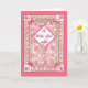 A pretty congratulations card for a baby girl with a patchwork quilt-like design in pink white and green, handpainted by Judy Adamson. The inside greeting, which you can customise, is 'Congratulations!'.