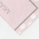 Cute baby girl birth announcement keepsake fleece blanket with an adorable elephant holding a pink and silver glitter balloon on a white polka dot background. Customise with your child's name, date of birth, weight, and length. This blanket would be so cute displayed on the wall of your infant's nursery.