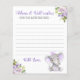 "Advice & Well-wishes" cards for a purple girl elephant themed baby shower, sprinkle, birthday or another occasion. Text is fully customisable. Made to match our Lilac Elephant Collection.