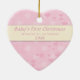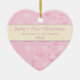 Commemorate the first Christmas of a baby girl. Adorable Baby Girl ornament in pink polka dot with a cream banner for text. Pink hearts float over the design. Personalise the baby's name and year. A perfect caring gift for new parents celebrating their first Christmas with a baby girl.
