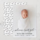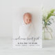 Trendy modern birth announcement featuring baby's vertical photo with the words "welcome, sweet girl" in black lowercase handwriting script, with decorative swashes before and after. Customise with baby's name, birth date and time, weight and length. Easily replace the sample image with your own favourite photo of your newborn. A white gradient filter helps make the text pop. The back of the card features a cute pattern of black hand-drawn hearts on a white background.