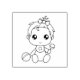 Cute cartoon baby girl dressed in a jumpsuit with a bib decorated with a tiny star. Toy ball is resting to the side.