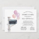 A baby shower by mail invitation is perfect for those that live a long distance from loved ones, but still want to shower the parents to be with love and gifts to prepare for the arrival of their baby. This long distance shower by mail invitation features a hand painted mailbox filled with pink balloons and the request poem "It’s difficult to live so far away When Baby Anderson is on the way. Gathering loved ones can be so hard So if you like, please mail your gift or card. And as they arrive day by day, They’ll feel all your love from far away." Customise with your wording. Click "Customise further" to edit the font style, size and colour if desired.