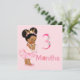 Sweet baby girl pink floral monthly birth milestone markers for baby documented monthly growth. This card represents 3 months on front and 4 months on the back. All other months available on other invitation/announcement cards in this collection. I have used one announcement/invitation card for 2 months at a time. Just flip card. Purchase card without envelope to use for milestone markers. Use your own personal background of your choice for photos.