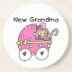 New Grandma mugs, keepsake boxes, ornaments, notebooks, pitchers, mousepads, magnets, and other new grandma gifts for the grandma of a new baby granddaughter! Features a baby in a pink carriage and kid style text that reads "New Grandma"!