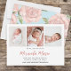 This design features a baby girl birth newborn photo template, with a photo collage simple stats template, an elegant stylish calligraphy typography, minimal minimalist welcome parents, new baby pregnancy cards,3 three multi-photo template, baby photo picture photography, botanical floral flower rose greenery, custom customised personalised baby card, a stylish calligraphy script font