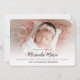 This design features a baby girl birth overlay text, with a simple newborn photo stats template, a welcome parent minimal minimalist, a simple calligraphy script typography, with a new baby pregnancy cards, elegant pink floral flower roses, botanical watercolor greenery foliage, new baby photo picture photography, a custom photo birth baby announcement, a cute chic pink roses flowers