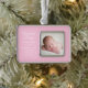 Add your beautiful baby photograph on this cute baby photo birth announcement Christmas ornament gift with white typography. Customise with birth details of your newborn under the picture. Pretty pink keepsake.